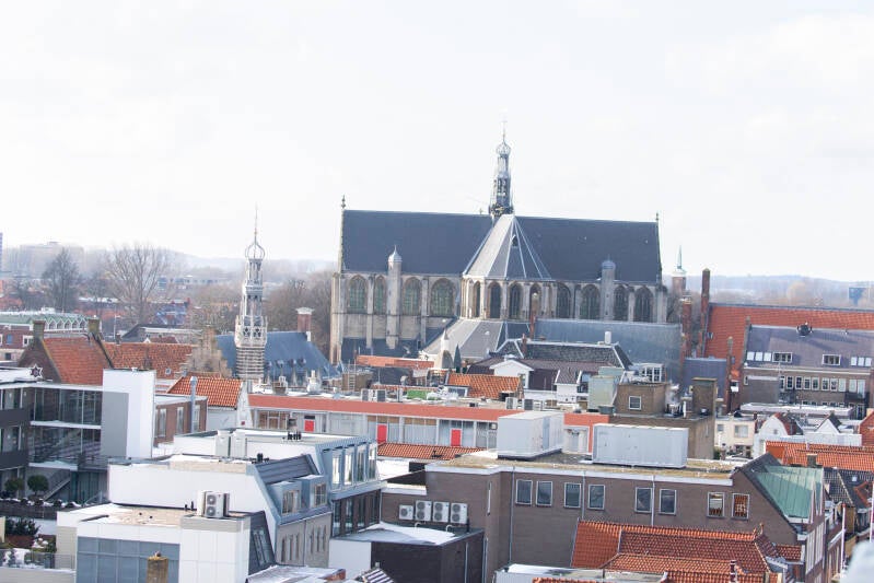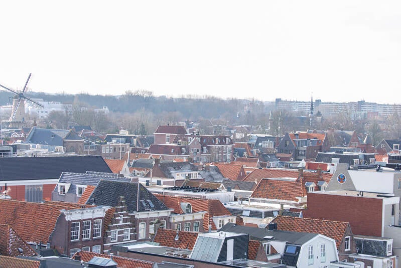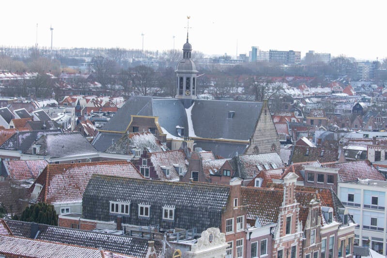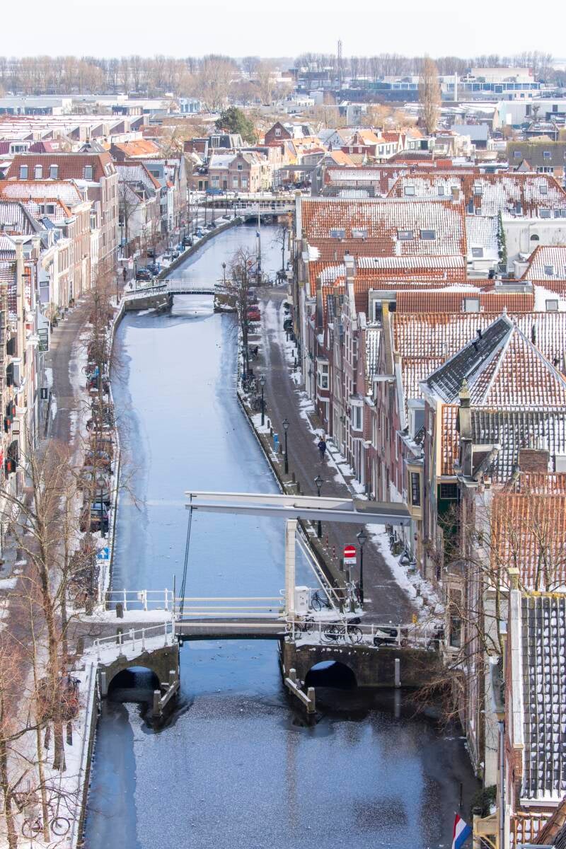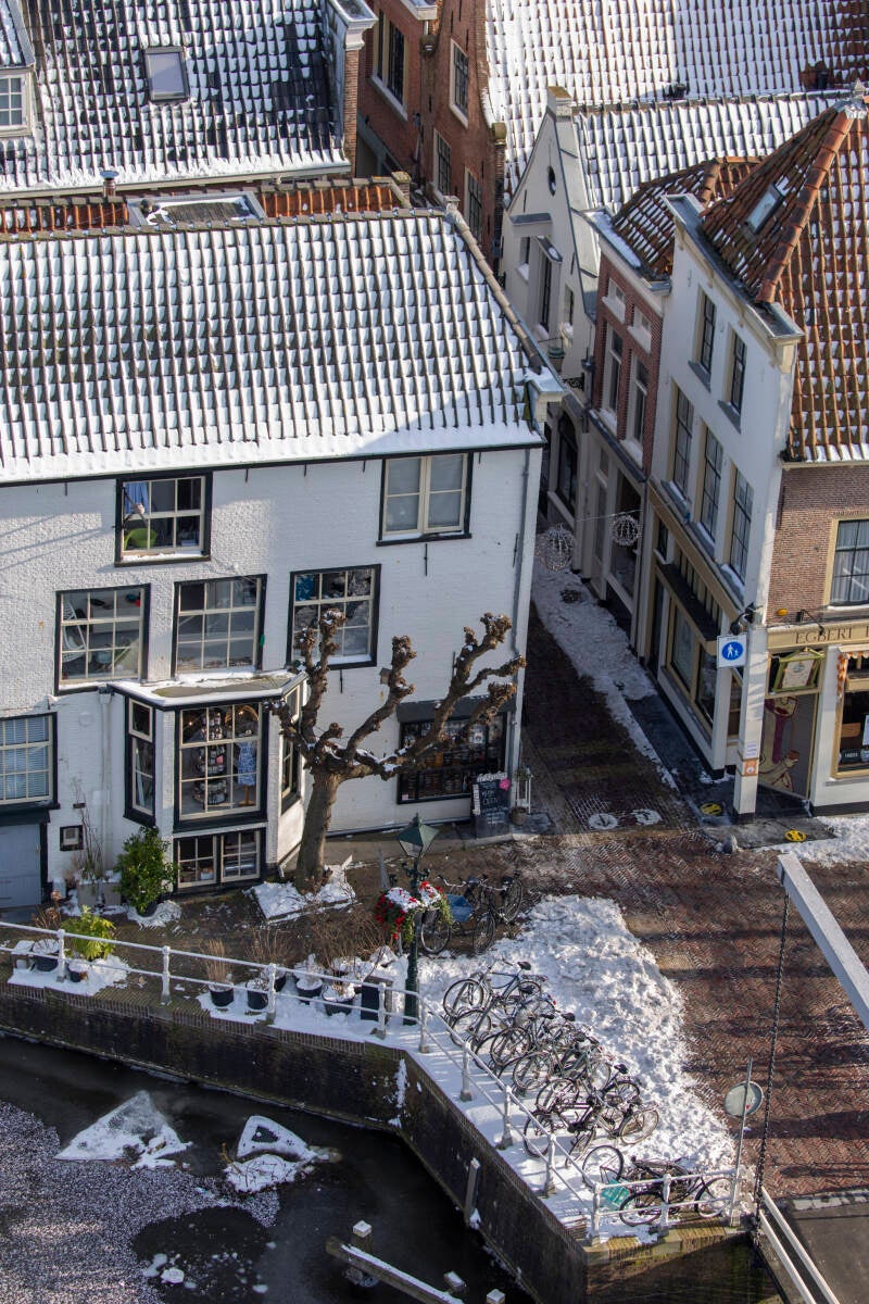 Een ander perspectief gekozen. Die van het uitzicht vanaf de Waagtoren, kijkend over Alkmaar dat bedekt is met een dun laagje sneeuw en ijs op de grachten.